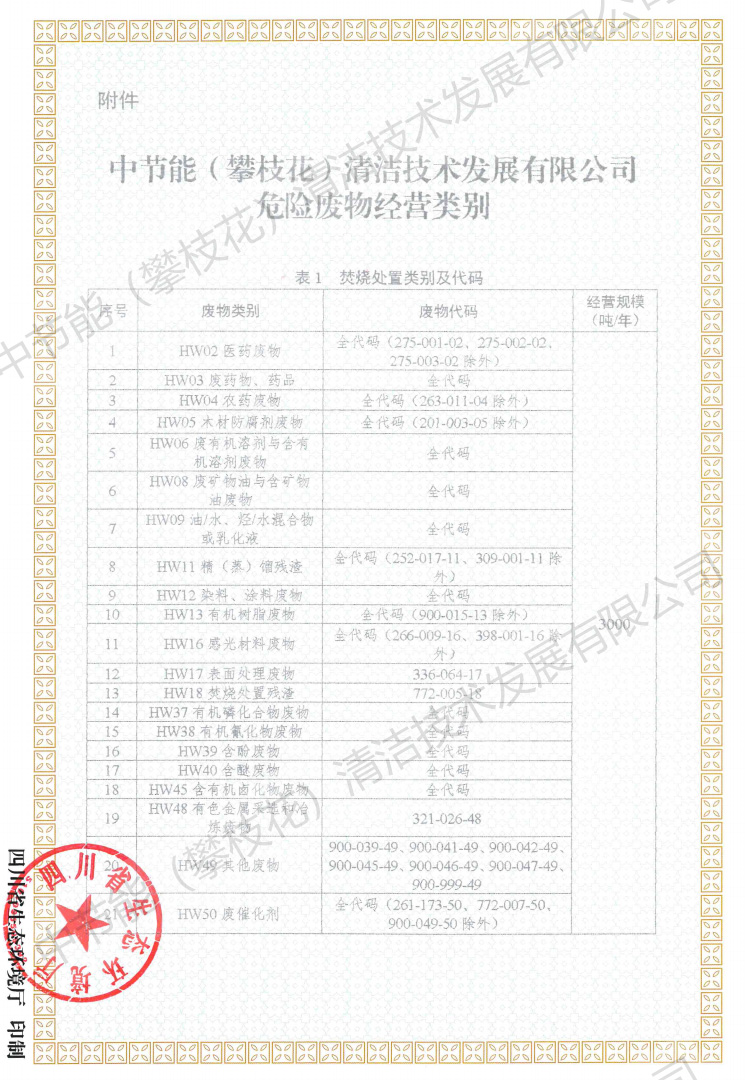 中節(jié)能(攀枝花)清潔技術(shù)發(fā)展有限公司(以下簡稱公司)成立于2008年5月,注冊資金1.6519億元。公司由中節(jié)能清潔技術(shù)發(fā)展有限公司和攀枝花市產(chǎn)業(yè)投資經(jīng)營有限責(zé)任公司共同持股,并由中節(jié)能清潔技術(shù)發(fā)展有限公司控股經(jīng)營。公司投資建設(shè)和運營的攀枝花市危險廢物處置中心項目是全國統(tǒng)籌部署的全國31個危險廢物綜合處置中心項目之一,位于攀枝花市仁和區(qū)大龍?zhí)多l(xiāng)迤資村華賣社,核準處理原生廢物2.425萬噸/年,可對43大類,447項(醫(yī)療廢物)進行安全處置。